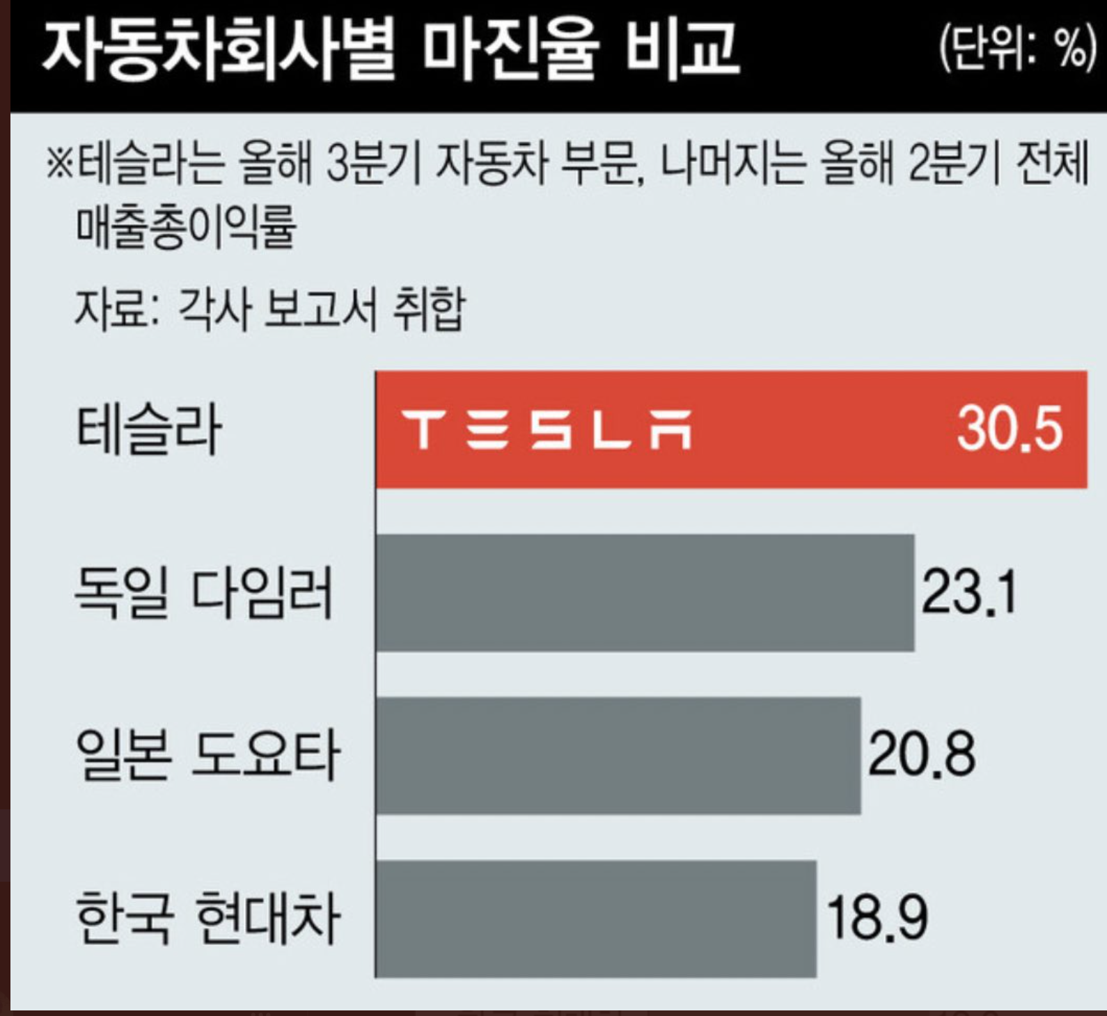 >> 이말은 강력한 가격결정력을 갖고 있다는 뜻이며 세계 매크로 시장의 상황에 따라 전기차의 가격을 내릴수도 올릴 수도 있다는 뜻이다.