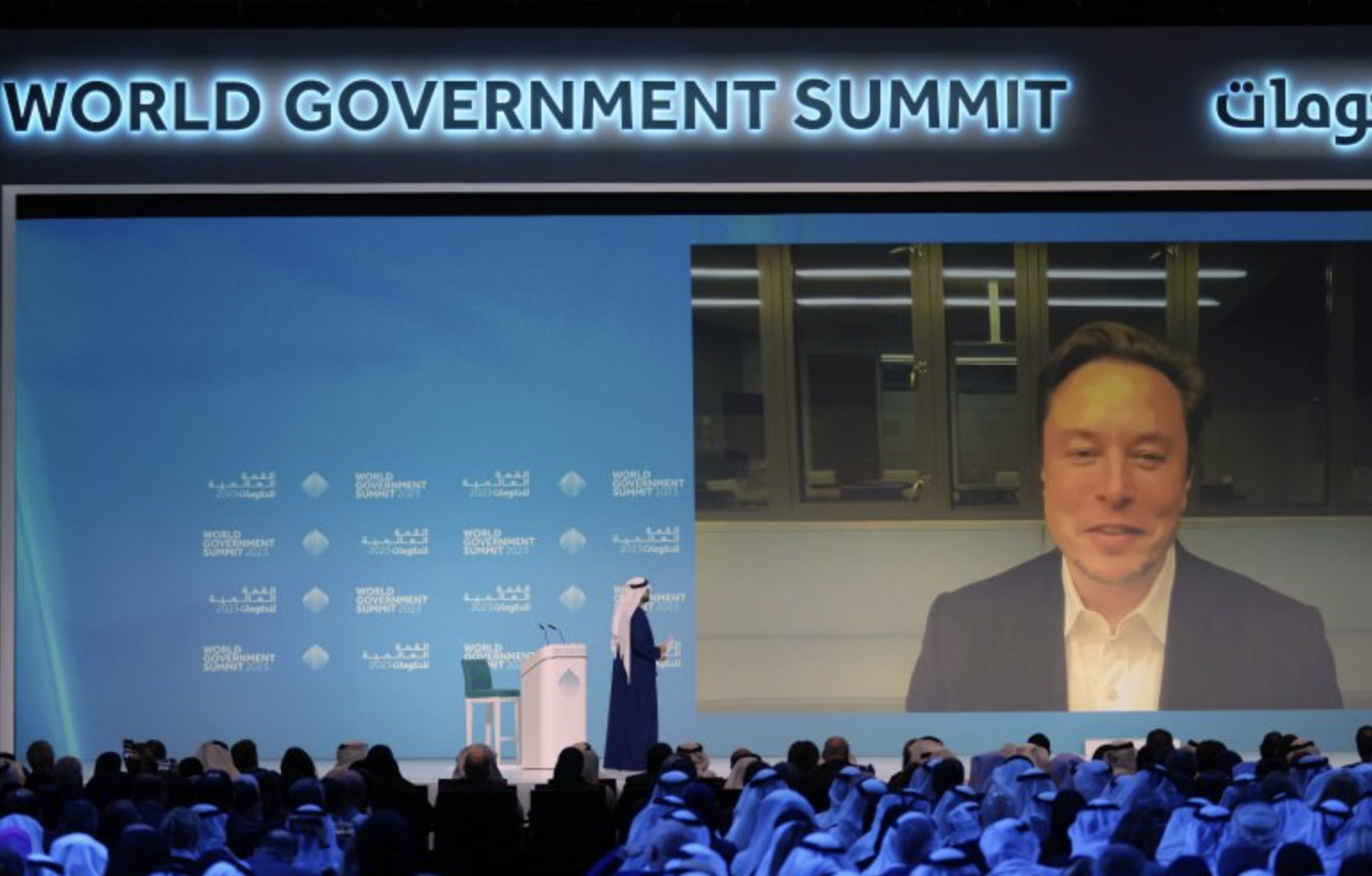 2월 13일 일론 머스크가 화상으로 참석한 아랍에미리트연합(UAE) 두바이 2023세계정부서밋에서 일론 머스크는 여전히 자신의 사고는 확장하며 더욱 커지고 있다고 얘기했다. 그는 여전히 1주일에 100시간이상을 일하며(테슬라 생산 지옥 시절이었던 불과 5년전인 2018년까지 일론 머스크는 1주일에 140시간이상을 일했다. 1일당 20시간을 오로지 공장에서 먹고 자고 일하며 생활했다)