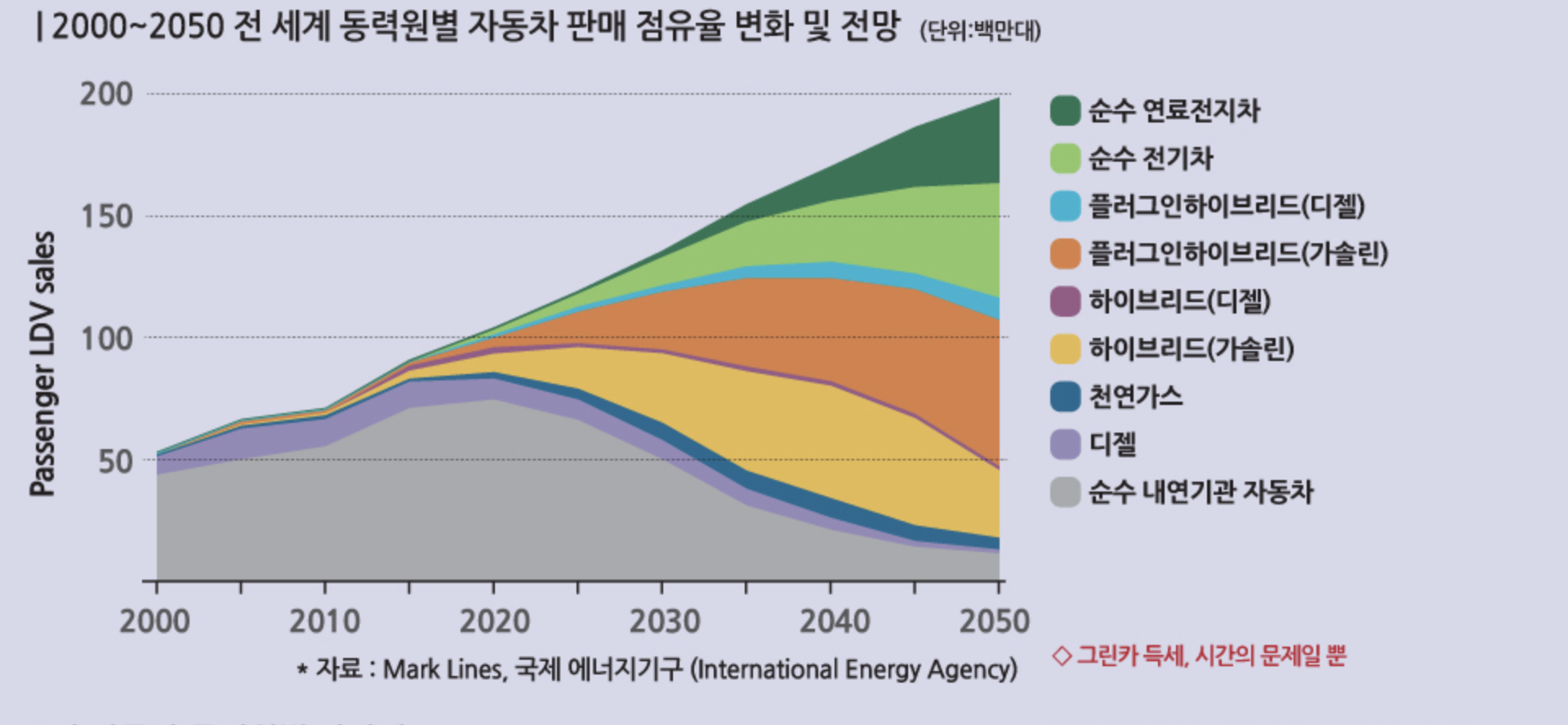 내연차에서 전기차로의 이행은 마치 애플의 스마트 폰이 기존의 노키아 벽돌폰을 갈아치우는 것 이상으로 정해진 미래이다.